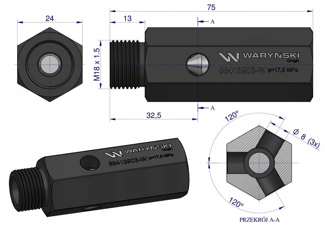Orbitrol W-ORBS-OR 125 cm3/obr z zaworami System Open Center WARYŃSKI