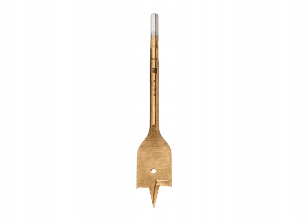 Wiertło do drewna płaskie - łopatkowe marki TEGER / przeznaczone do wiercenia dużych otworów w drewnie, płycie meblowej, tworzywach sztucznych, płycie gipsowej oraz gazobetonie. Hartowany wierzchołek z dwoma krawędziami skrawającymi zapewnia doskonałe centrowanie wiertła. Wykonanie z wysokogatunkowej stali węglowej oraz szlifowane ostrze pozwala na precyzyjną pracę wiertła oraz zmniejsza wibrację.