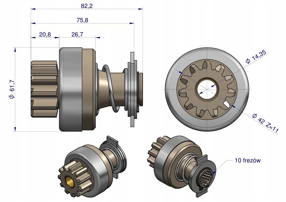 Zespół sprzęgający rozrusznika JCB 16.902.621 (rozrusznik Iskra) EXPOM eu