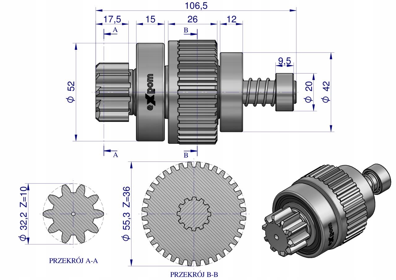 Strona główna » Rozruszniki, alternatory » Części rozruszników » Zespół sprzęgający rozrusznika JOHN DEERE typu Magneton 9142700 Blue EXPOM