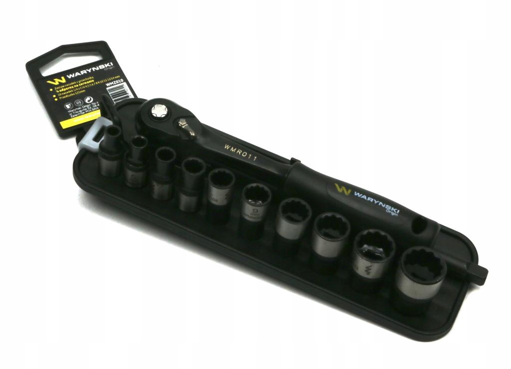 - Zawartość: 10 nasadek dwunastokątnych z grzechotką i przedłużką
