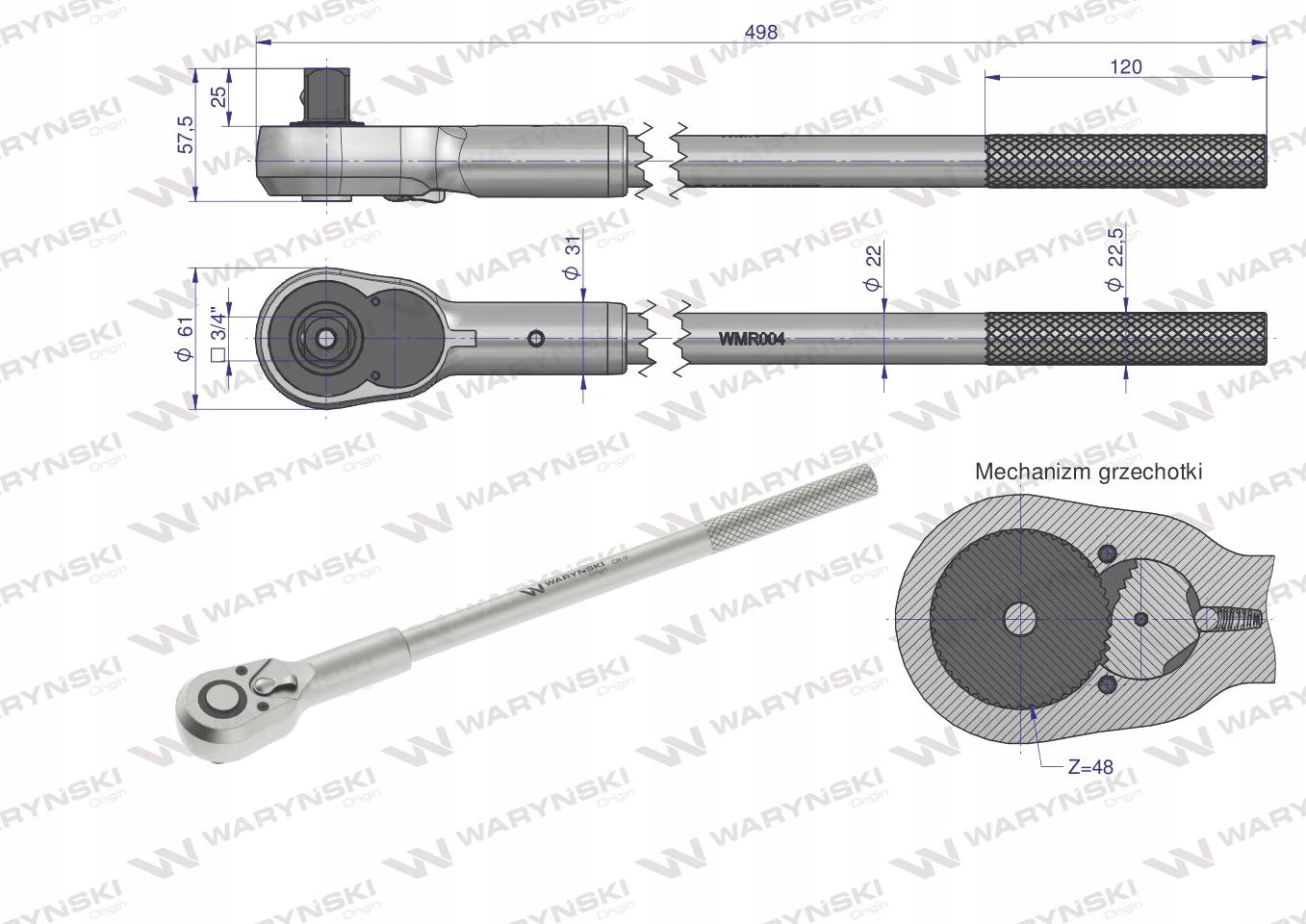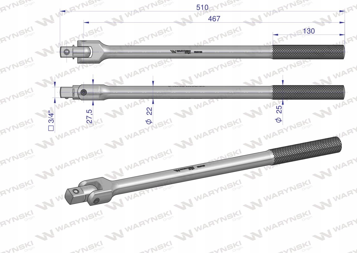 Zestaw nasadek 3/4 z grzechotką i rękojeścią przegubową marki WARYŃSKI