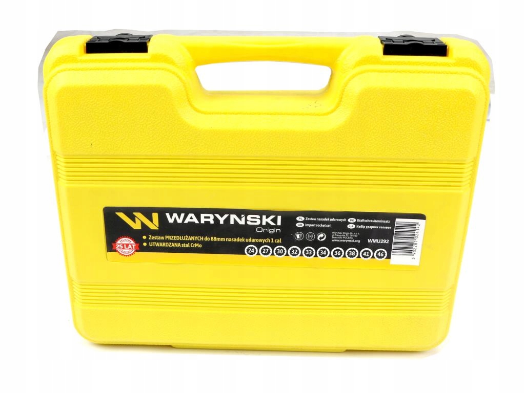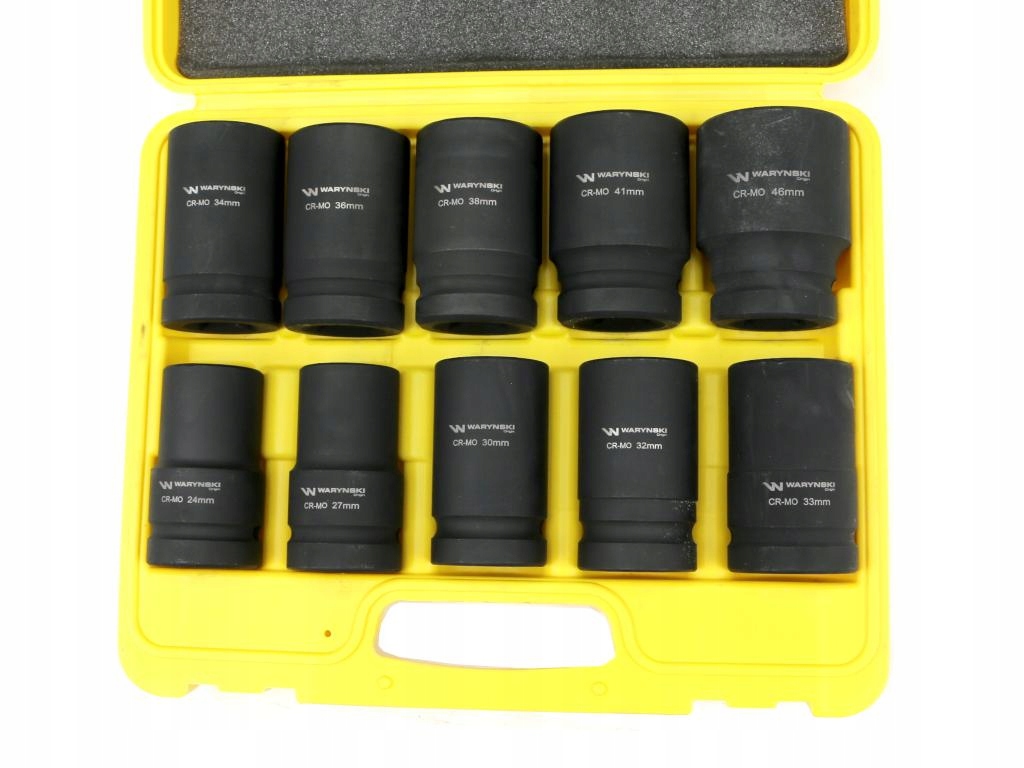 Zestaw nasadek udarowych długich 1" dwunastokątnych 10 nasadek rozmiary 24 27 30 32 33 34 36 38 41 46 mm ze stali CrMo DIN3129 Waryński