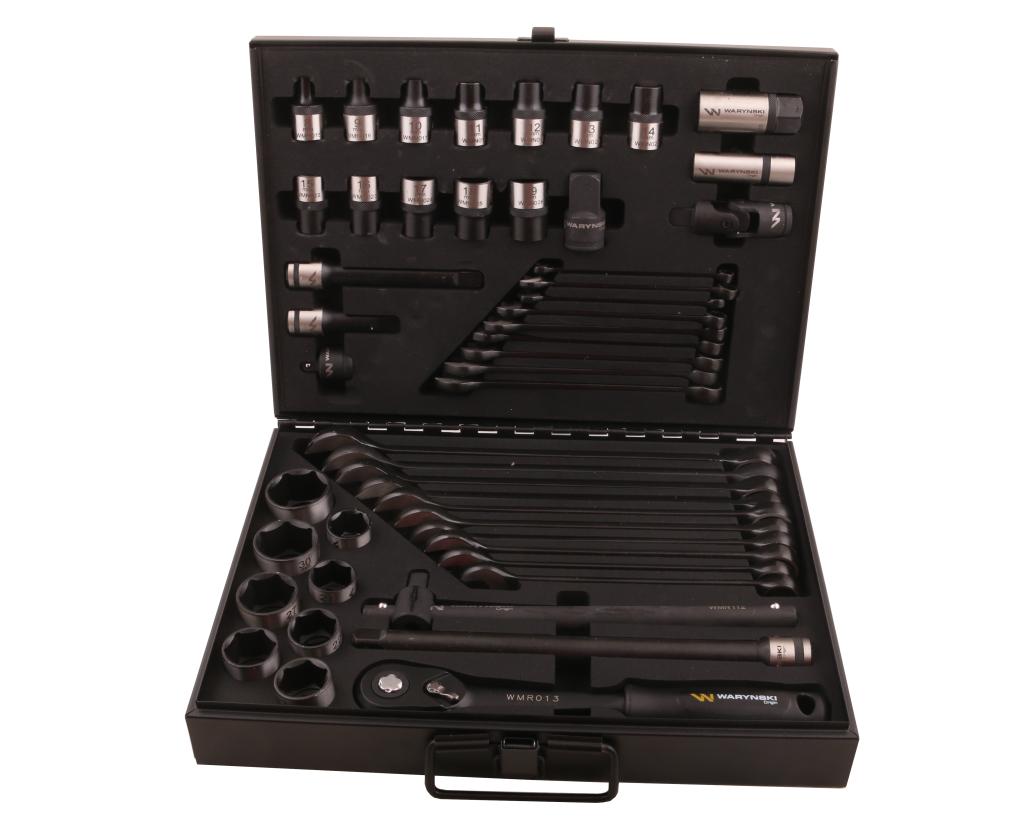 Zestaw nasadek 1./2 z grzechotką i kluczami w kasecie metalowej 49 elementów Waryński